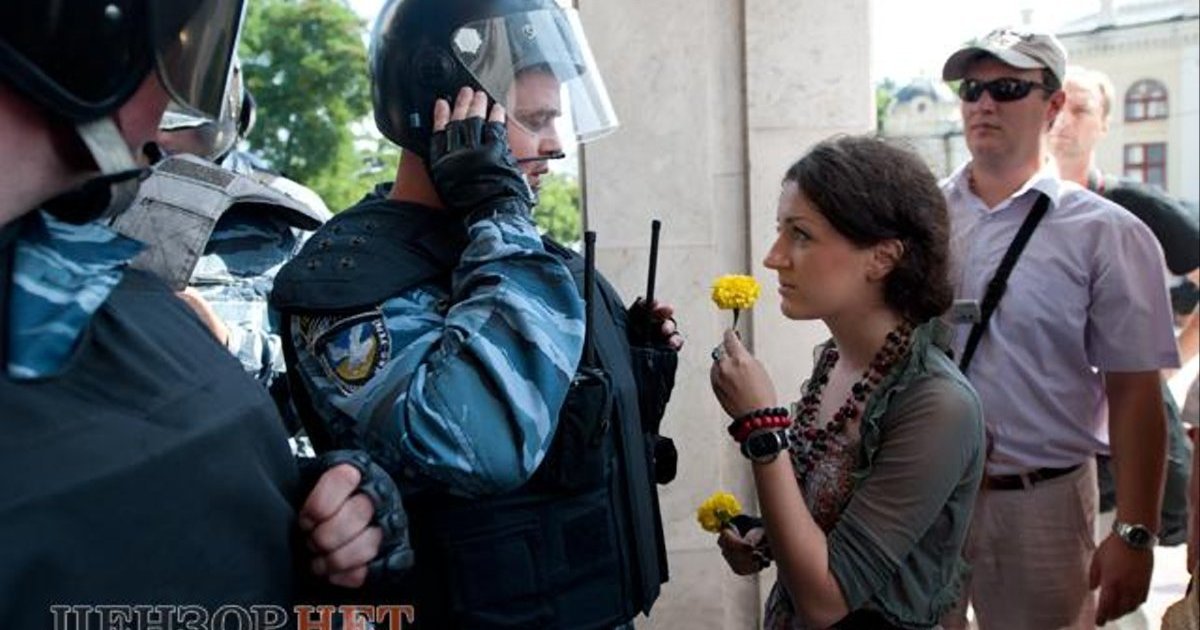 В чем сила? Девушка с цветами вышла к бойцам "Беркута". ФОТО+ВИДЕО(обновлено)