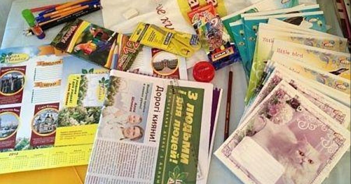 Подарочные наборы от кандидата в депутаты Верховной Рады Аллы Шлапак в четверг раздавали школьникам, - передает Цензор.НЕТ со ссылкой на сайт "Спільна справа".