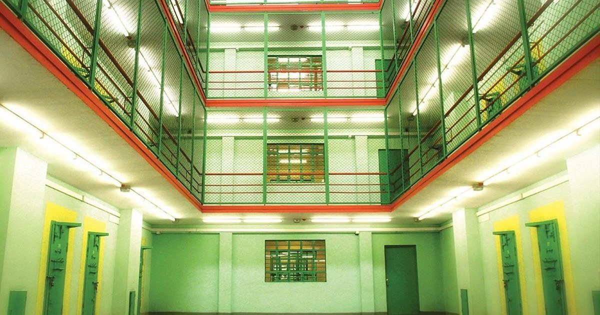 Дальше этого места снимать не разрешили. На окне висит табличка с информацией о том, что в 2011 г. эта тюрьма получила премию Всемирной организации здравоохранения.