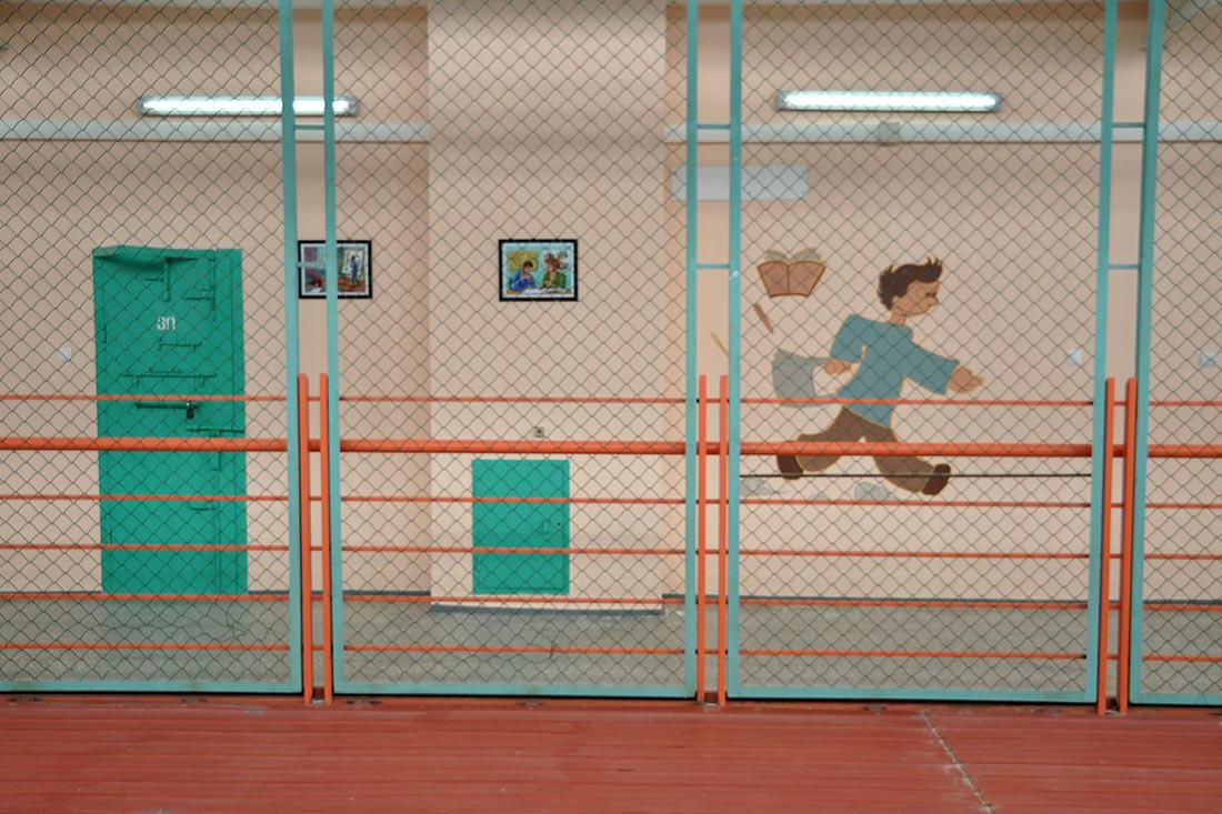 Коридор отделения для «малолеток» увешан назидательными фотографиями и расписан веселыми картинками.