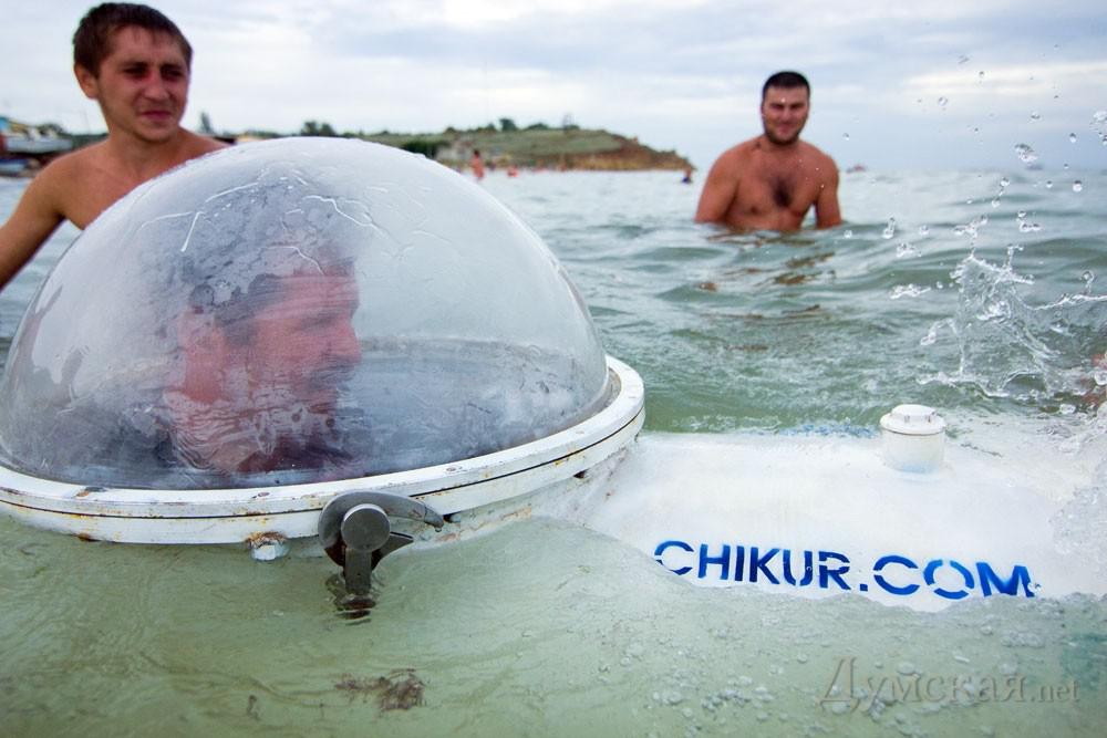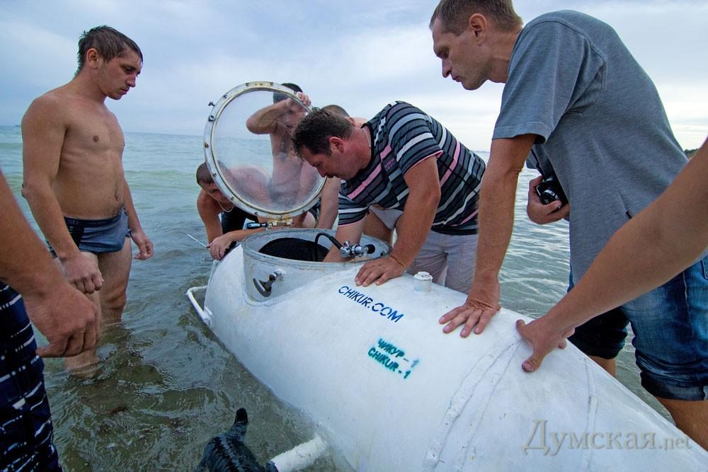 Очередные испытания одноместной подводной лодки, которую своими силами построил одессит Василий Чикур, прошли вчера на пляже в районе 412-й батареи (поселок Черноморское Коминтерновского района).