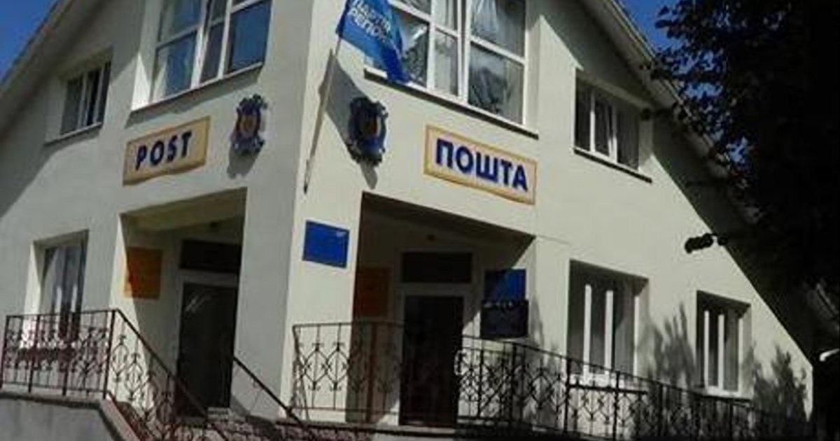 Так в городе Дворична, Харьковской области на здании "Укрпочта" вместо государственного флага вывешен флаг Партии регионов.