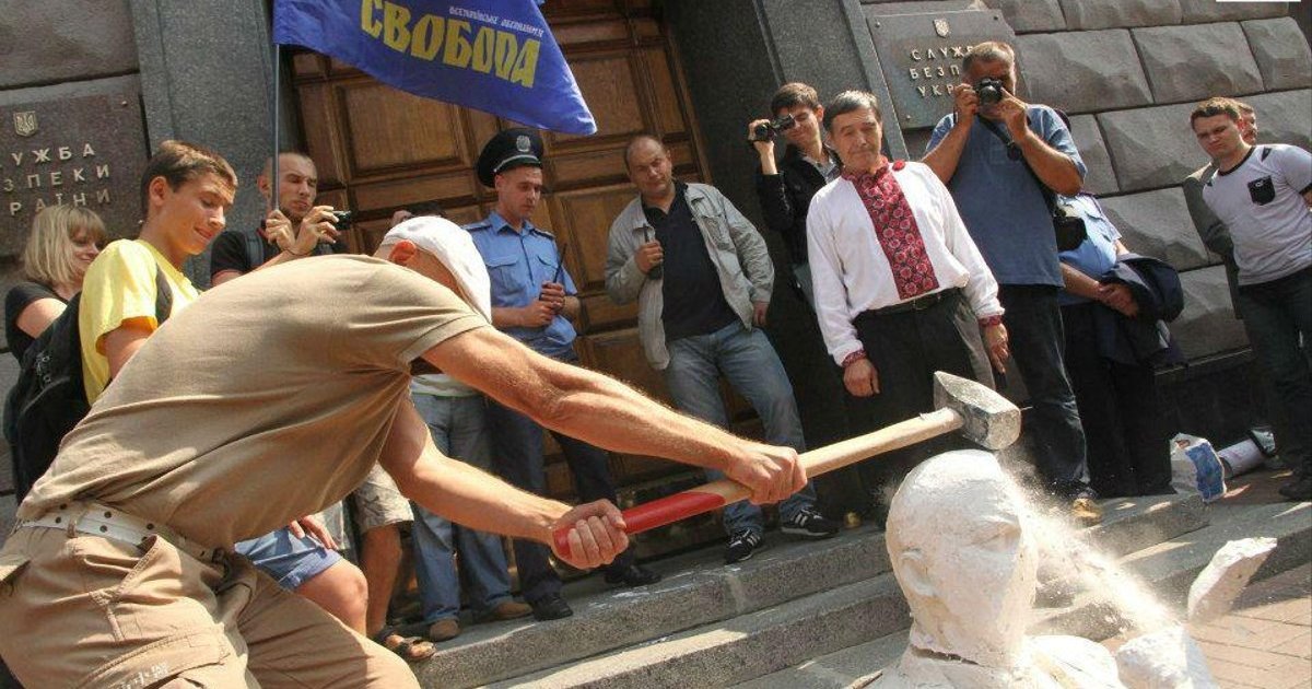 "Свободовцы" возле СБУ разбили бюст Ленина. ФОТОрепортаж+ВИДЕО