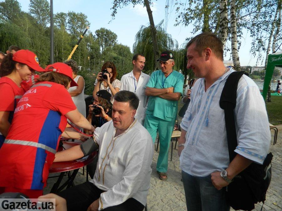 Помимо политиков, переплыть пруд могли и все желающие. Однако перед плаванием участники должны были обязательно пройти медосмотр - врачи на пристани измеряли артериальное давление и слушали сердце. В результате к заплыву были допущены всего 9 участников.