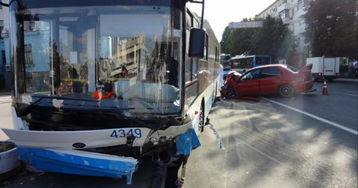 В центре Симферополя лихач на Mitsubishi протаранил троллейбус. ФОТОрепортаж