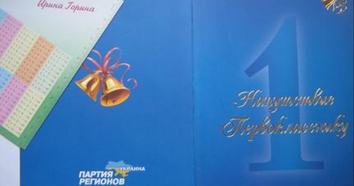 ЧИТАЙТЕ ТАКЖЕ НА Цензор.НЕТ: На Хмельниччине директора школ раздали детям наборы с символикой ПР: "Это вам от Партии регионов". ФОТО