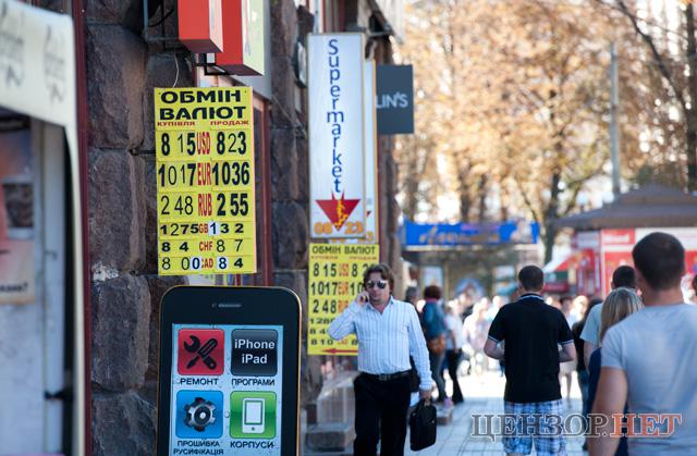 Гривня в обменниках Киева продолжает падать. ФОТОрепортаж