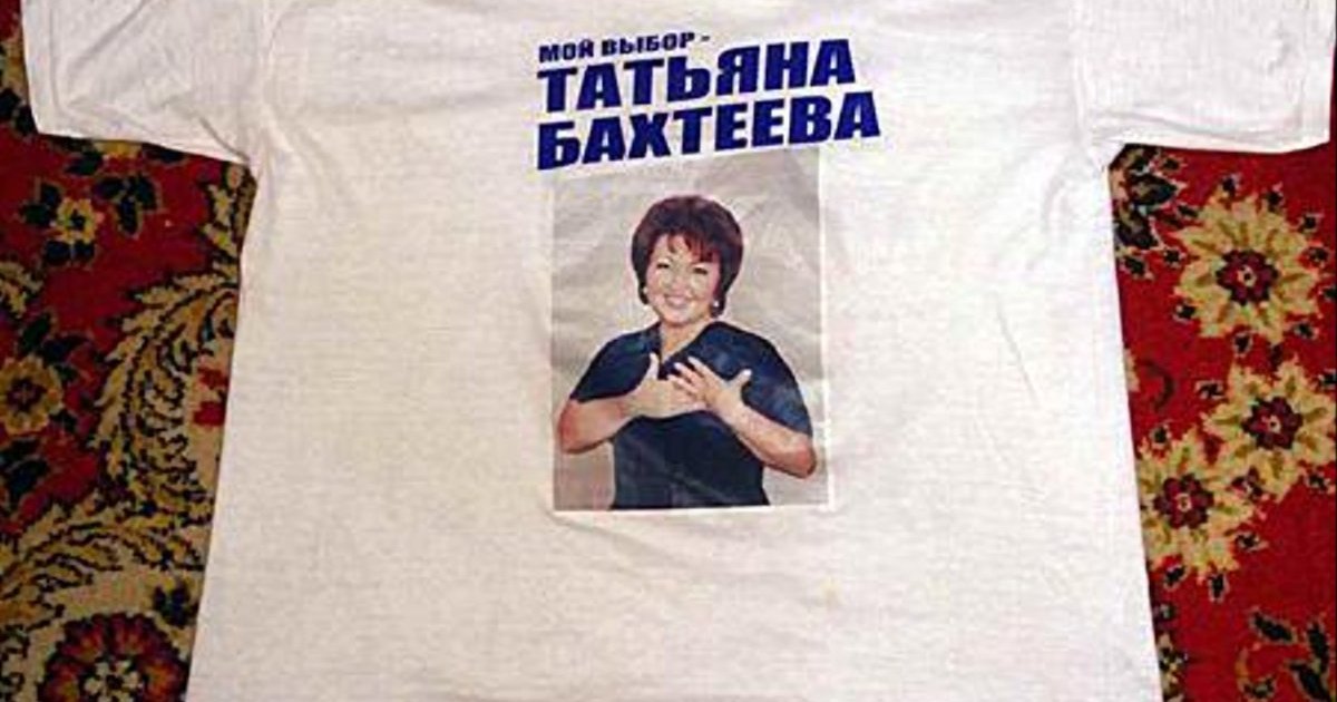 "Регионалка" Бахтеева дарит футболки с собственным изображением. ФОТО