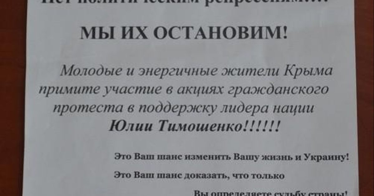 В Крыму распространили провокационные листовки, которые, якобы, были написаны от имени «Батькивщины», призывающие молодых и энергичных людей к участию в акциях за деньги.