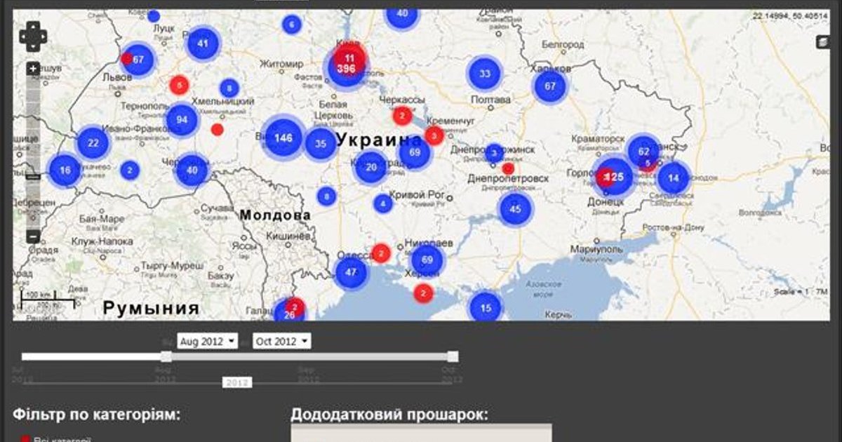 На карте отображаются сообщения о количестве правонарушений во время предвыборного процесса.
