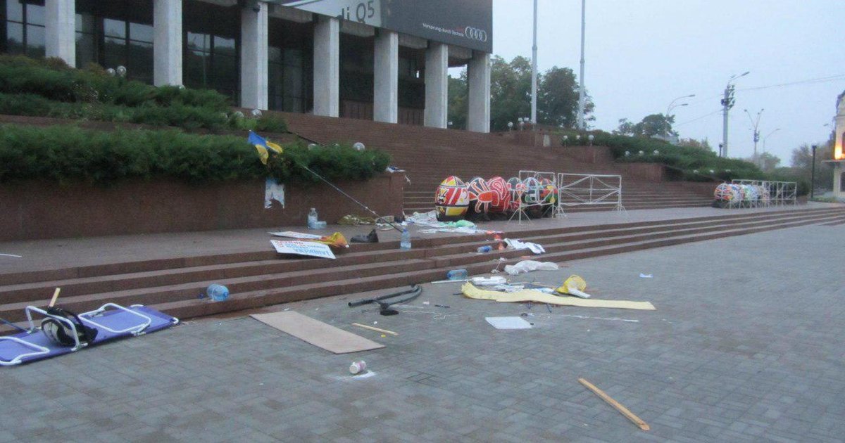 Напомним, 9 сентября активисты сообщали о том, что неизвестные в жилетах коммунальщиков разгромили лагерь защитников украинского языка возле Украинского Дома в Киеве.
