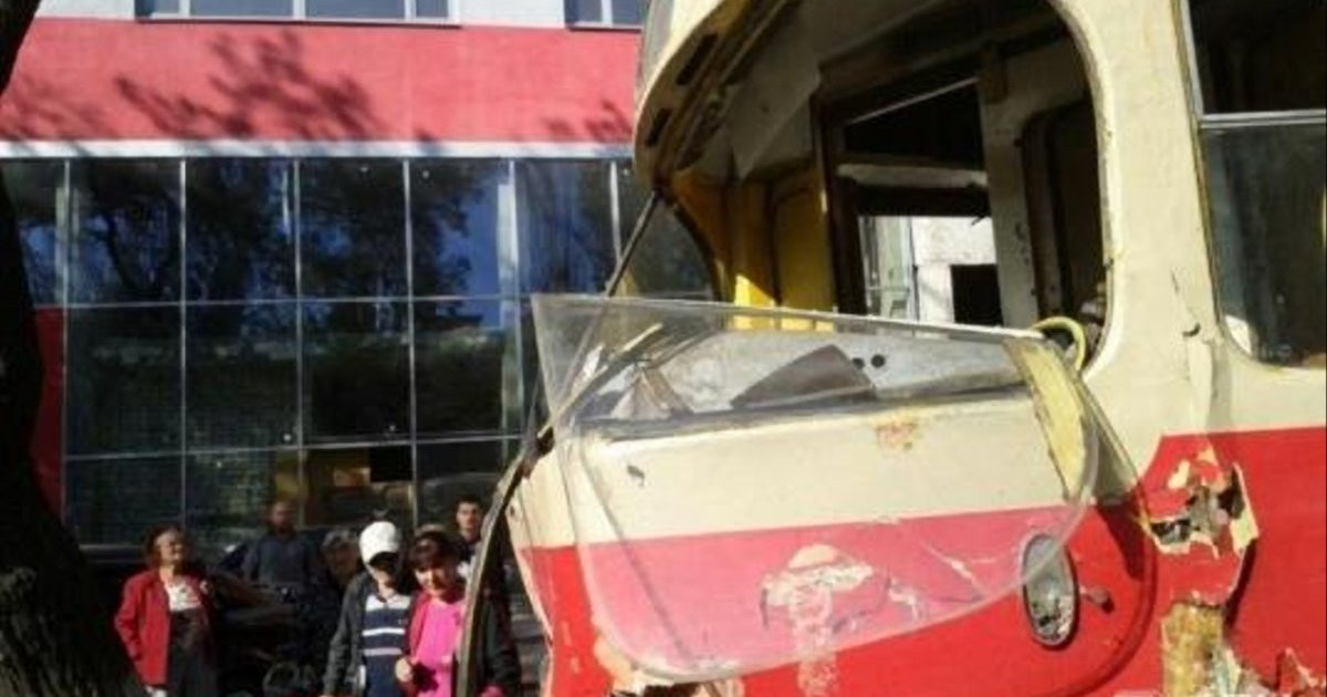 В Одессе автокран протаранил трамвай с пассажирами. ФОТОрепортаж