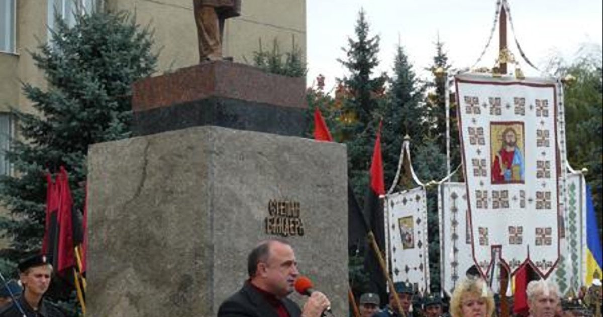 Кандидат в народные депутаты в 125 избирательном округе, первый заместитель НАК "Нафтогаз Украины" Андрей Лопушанский накануне выборов дарит памятники Степану Бандере.