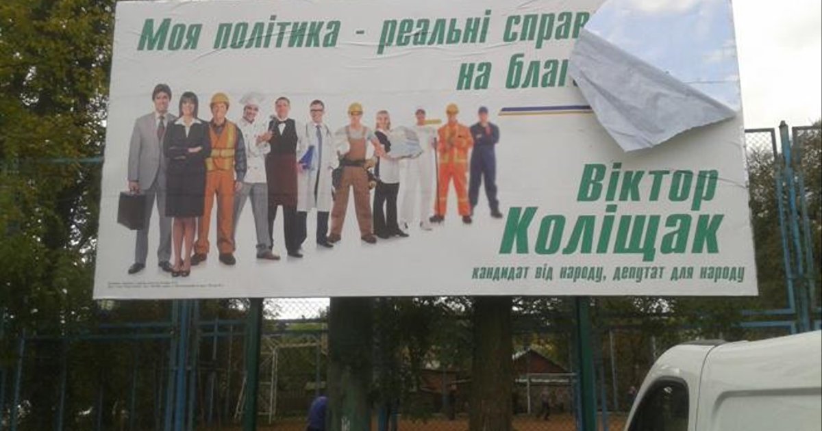 В Хмельницком кандидат в народные депутаты в 188-м избирательном округе, действующий глава Хмельницкой райгосадминистрации и руководитель облорганизации «Единый центр» Виктор Колищак использует на собственных агитационных билл-бордах американцев.