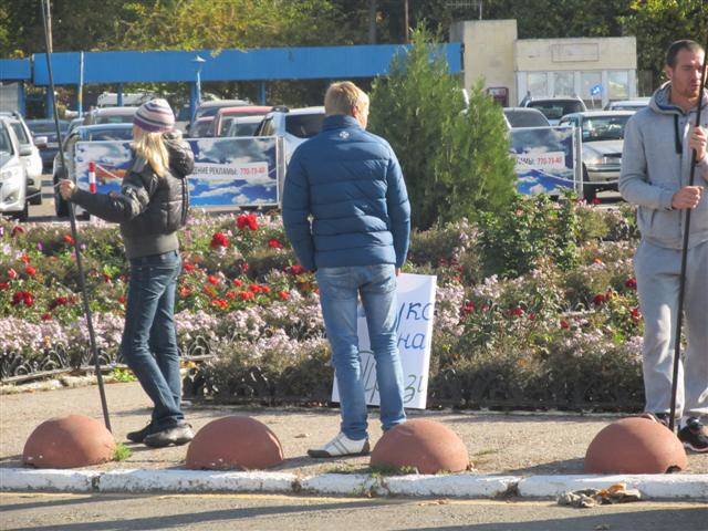 При появлении журналистов некоторые участники акции, которые стоят с плакатами, отворачивали свои лица, чтобы они не попали в объектив фотоаппарата. Массовку Партии регионов привезли к аэропорту на автобусах.