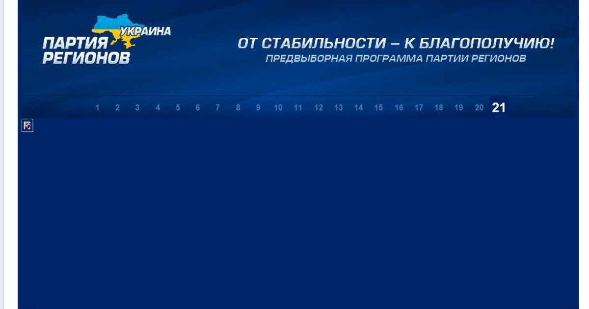 Украинский премьер Николай Азаров на своей странице в Facebook выложил "Предвыборную программу Партии регионов" под лозунгом "От стабильности - к благополучию".