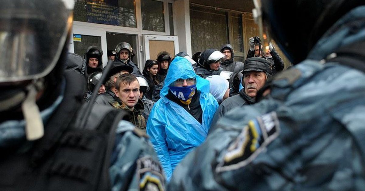 "Ось так свободівці зустрічали непроханих гостей щойно ті захотіли повторити спробу протиснутися до дверей ОВК. Не думайте, що якщо дрібні, то можна і побити. Грамотно розраховані сили і людські ресурси роблять чудеса. купка людей змогла цілком нормально протистояти добре треновани бицюрам", - отмечает очевидец.