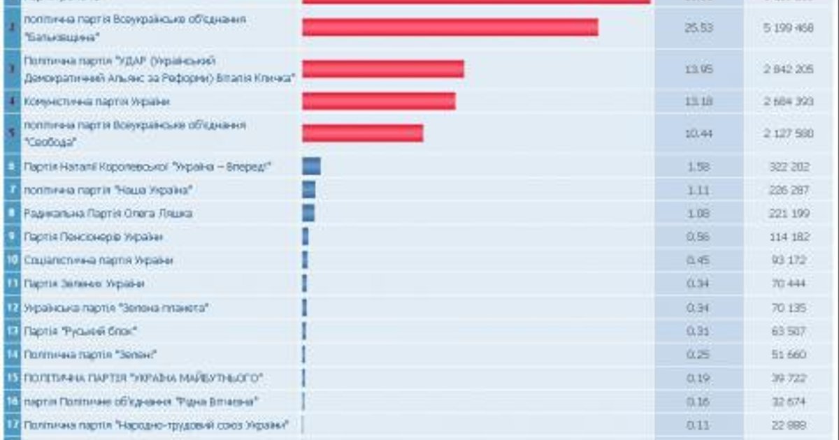 Стоит отметить, что еще в субботу, 3 ноября, показатель Партии регионов составлял 29,9%. А позднее вырос до 30% после обработки 99,81% протоколов.