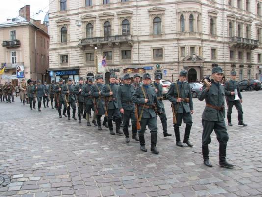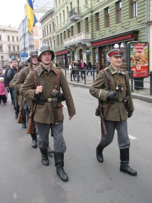 4 ноября по центральным улицам Львова прошли мужчины в военной форме Украинских сечевых стрельцов в честь 94 годовщины со дня провозглашения Западно-Украинской народной республики. Акцию организовало общество поиска жертв войны "Память".