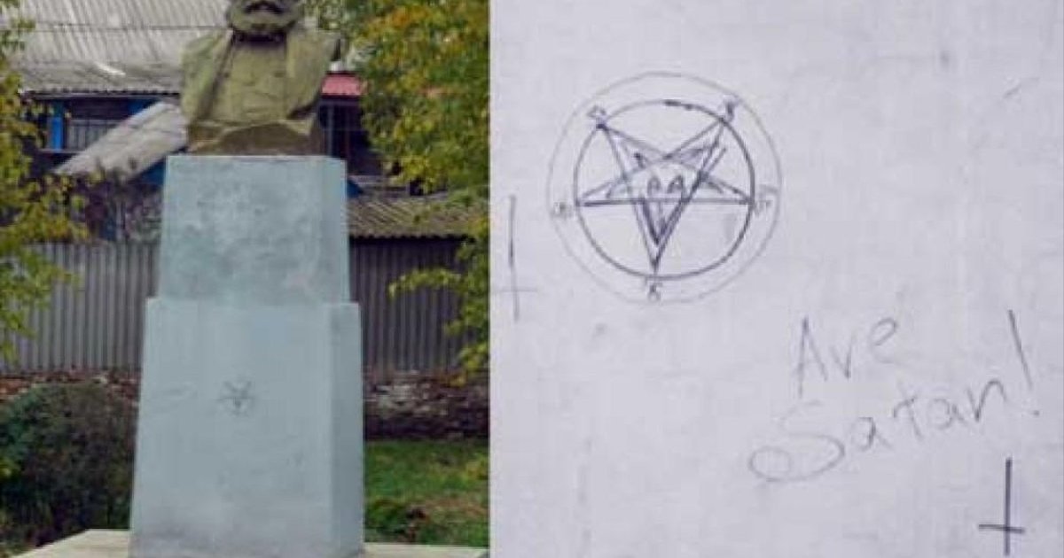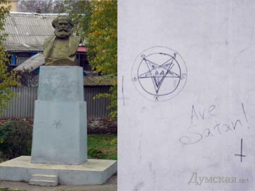 На Одесчине памятник Карлу Марксу "украсили" сатанинскими символами. ФОТО