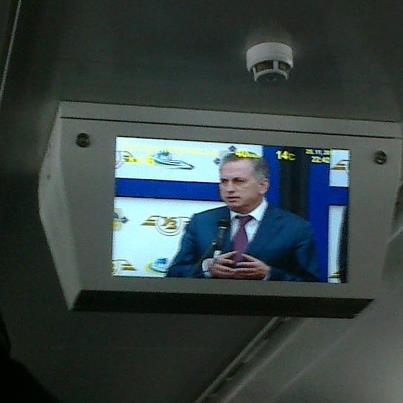 В новом скоростном экспрессе Хюндай «Киев-Днепропетровск» значительную часть времени на экранах показывают сюжеты о достижениях министра инфраструктуры Бориса Колесникова.