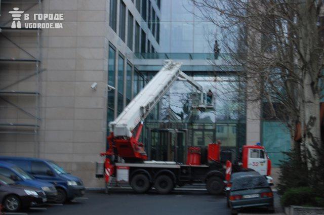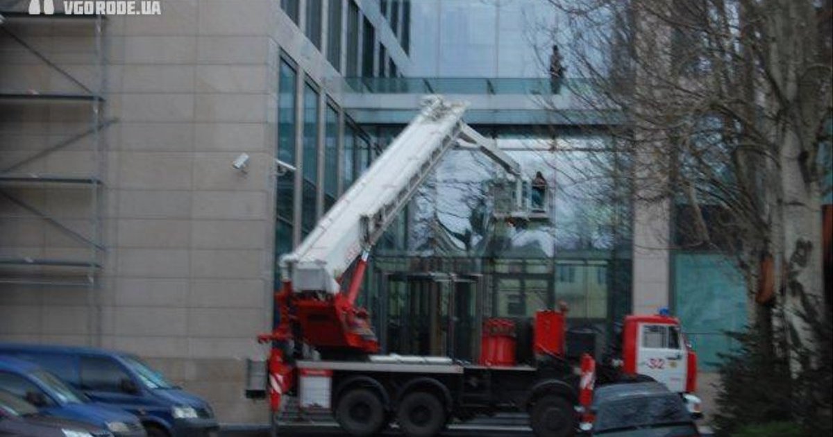 Мойкой окон в офисе Ахметова занимаются пожарные. ФОТО