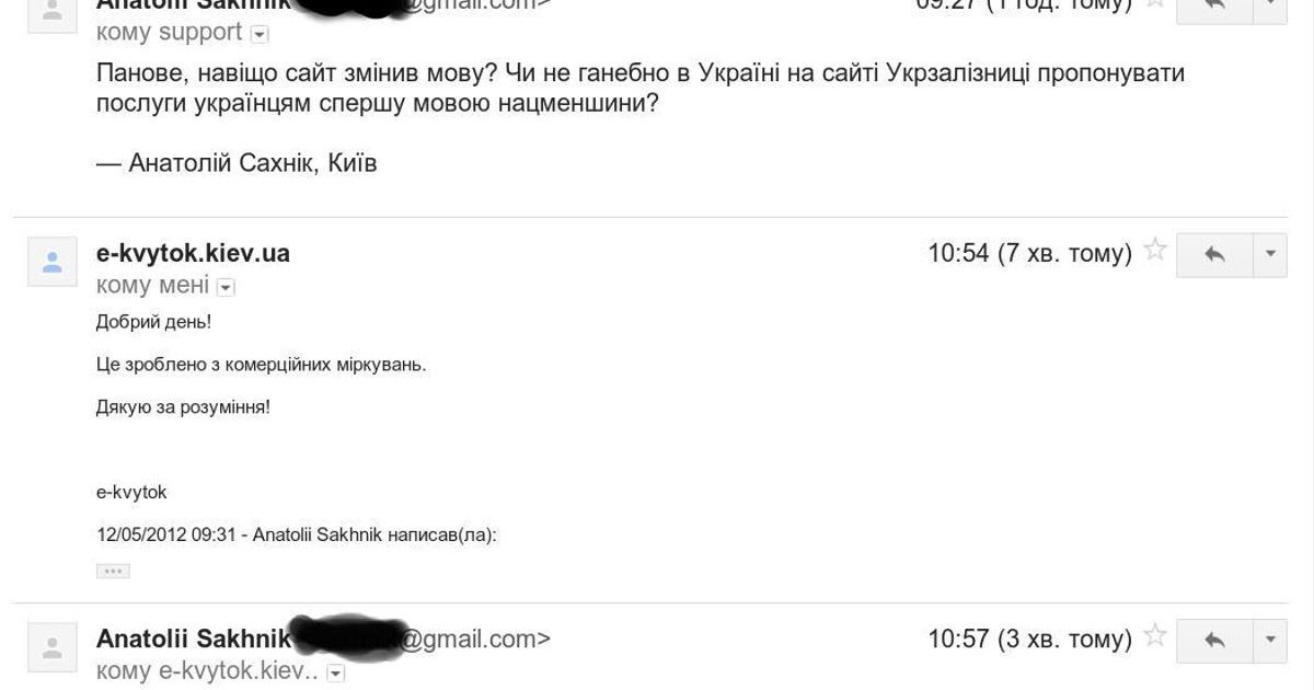 Такой ответ от e-kvytok.kiev.ua получил киевлянин Анатолий Сахник, передает Цензор.НЕТ.