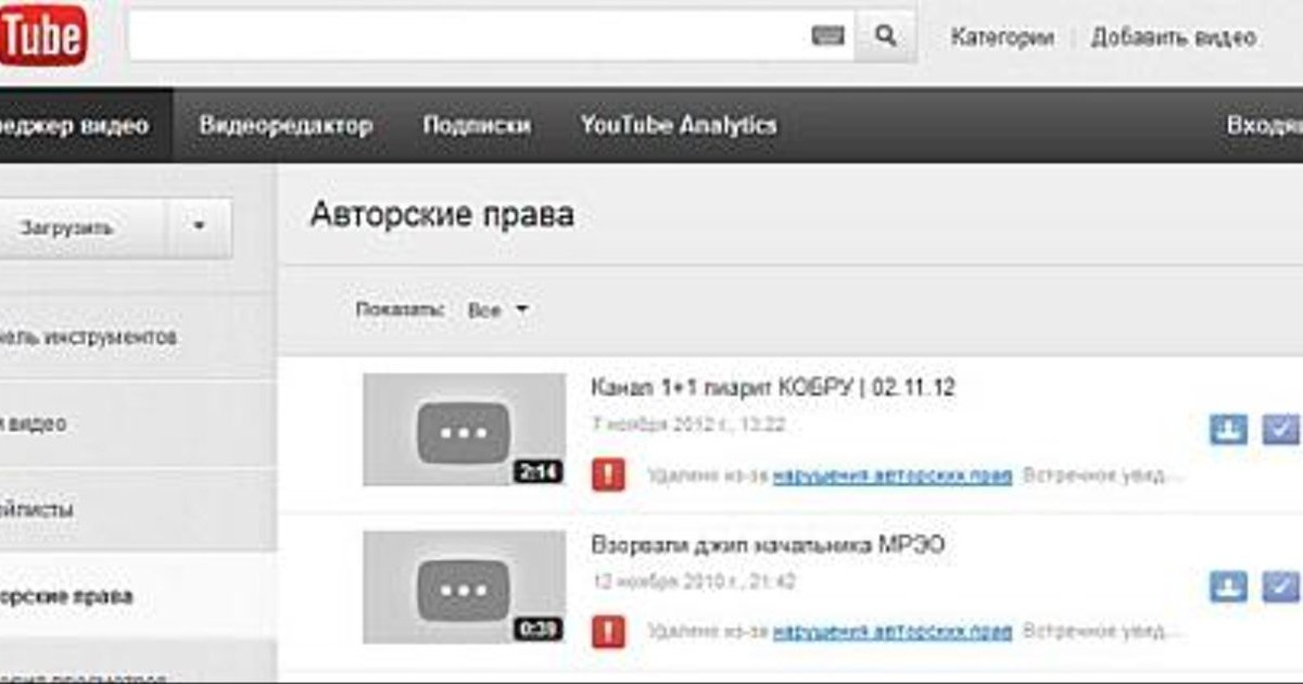 Об этом в четверг сообщает Цензор.НЕТ со ссылкой на "Дорожный контроль". Журналисты указывают, что данное решение было принято по причине жалоб телеканала "1+1". 5 декабря "Дорожный контроль" получил вторую претензию от "1+1" о нарушении авторского права. Суть двух претензий заключалась в том, что "ДК" на своем канале YouTube загрузил два сюжета из выпуска новостей ТСН. Первый - сюжет о спецподразделении КОБРА от 02.11.2012, второй - о том, как в Одессе взорвали джип начальника МРЭО, загруженный в ноябре 2010 года.