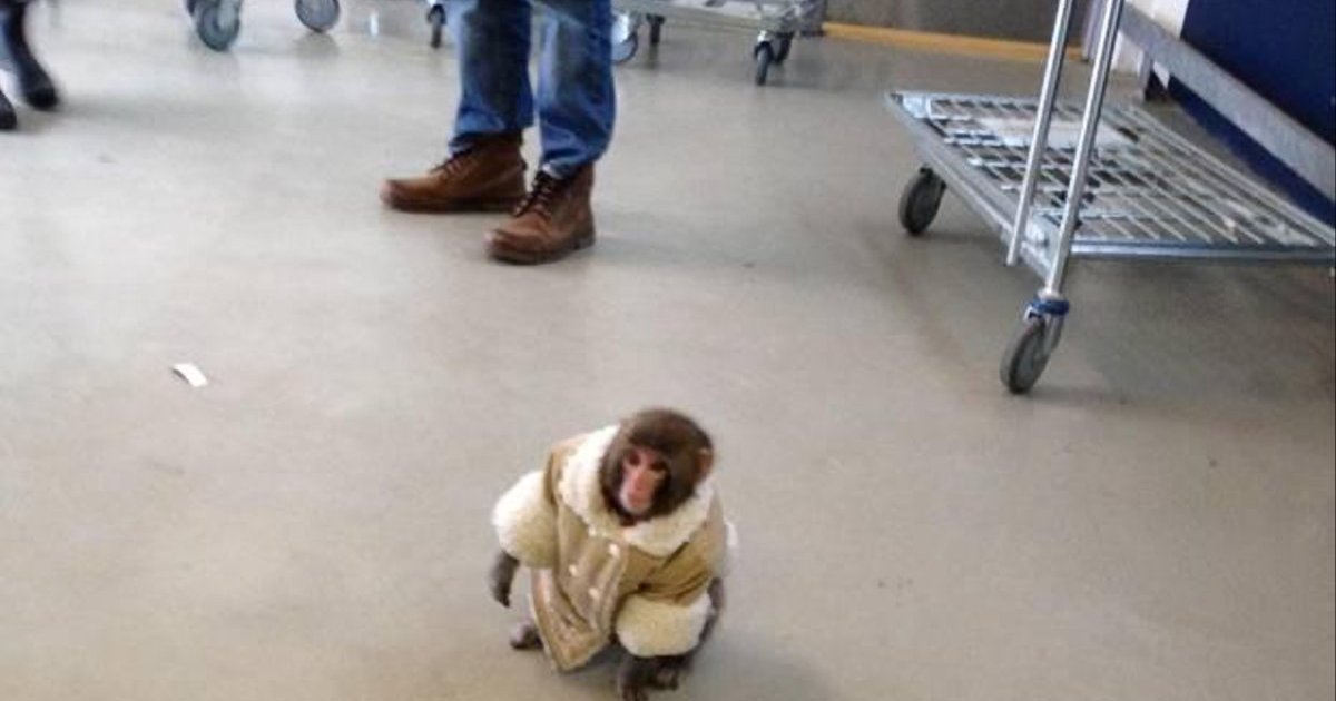 В воскресенье посетители одного из магазинов в Торонто заметили в помещении обезьяну, которая была одета в зимнее пальто.