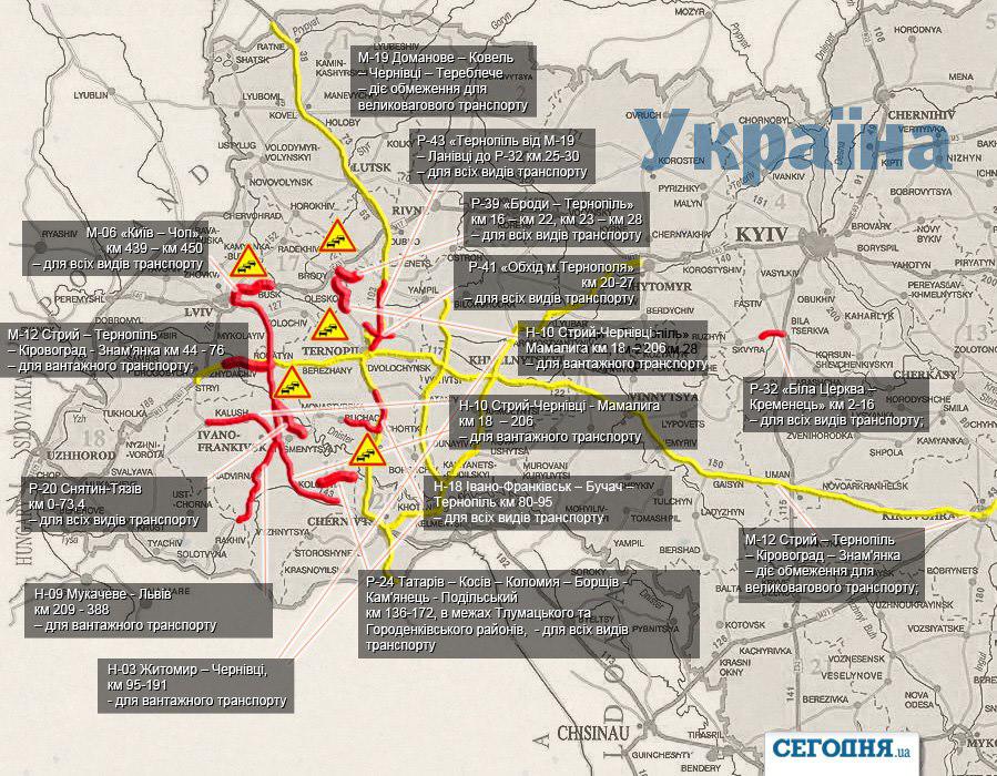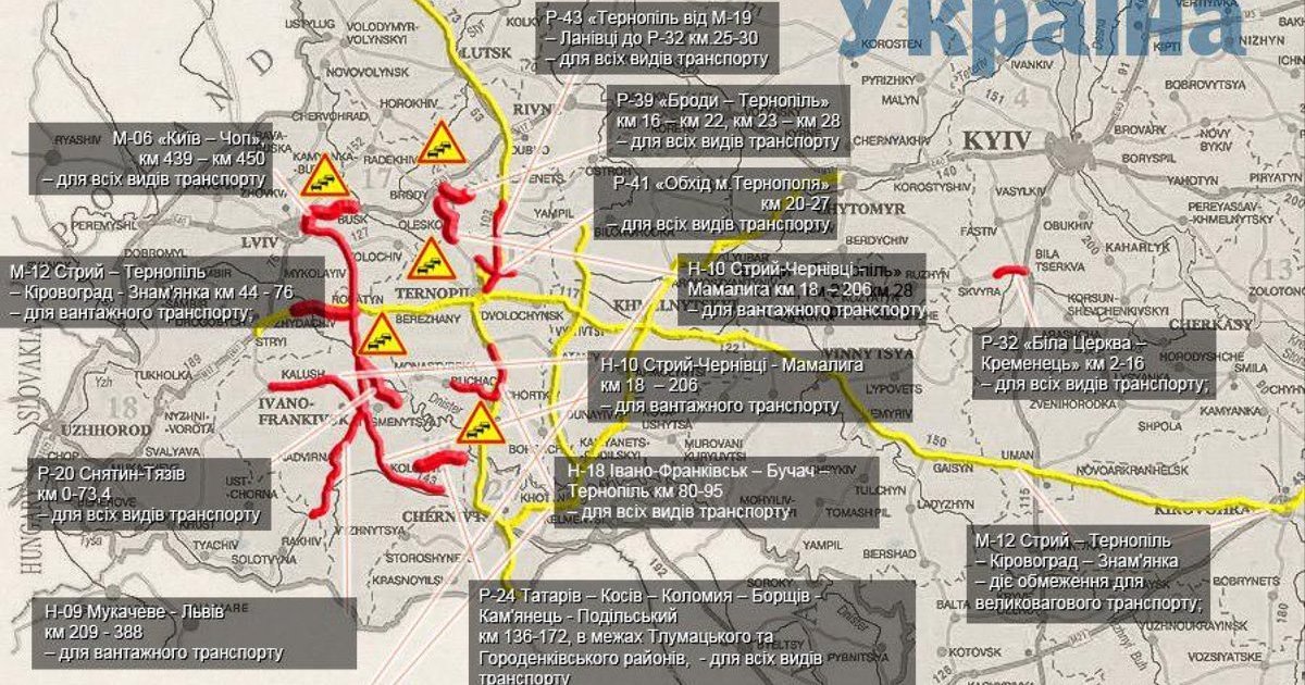 Карта заторов Украины: движение на трассах перекрыто. ФОТО