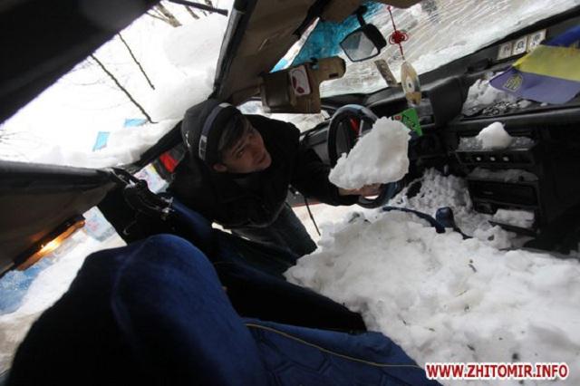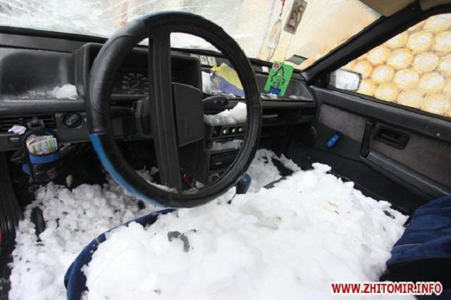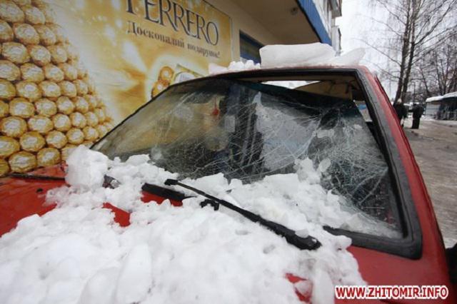 В Житомире глыба льда рухнула и раздавила машину. ФОТОрепортаж