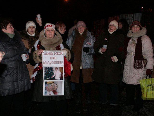 Уже второй Новый год харьковские активисты "Батькивщины" встречают рядом с экс-премьером. В прошлом году они собирались у Качановской исправительной колонии № 54, куда Тимошенко была этапирована 30 декабря для отбывания наказания.