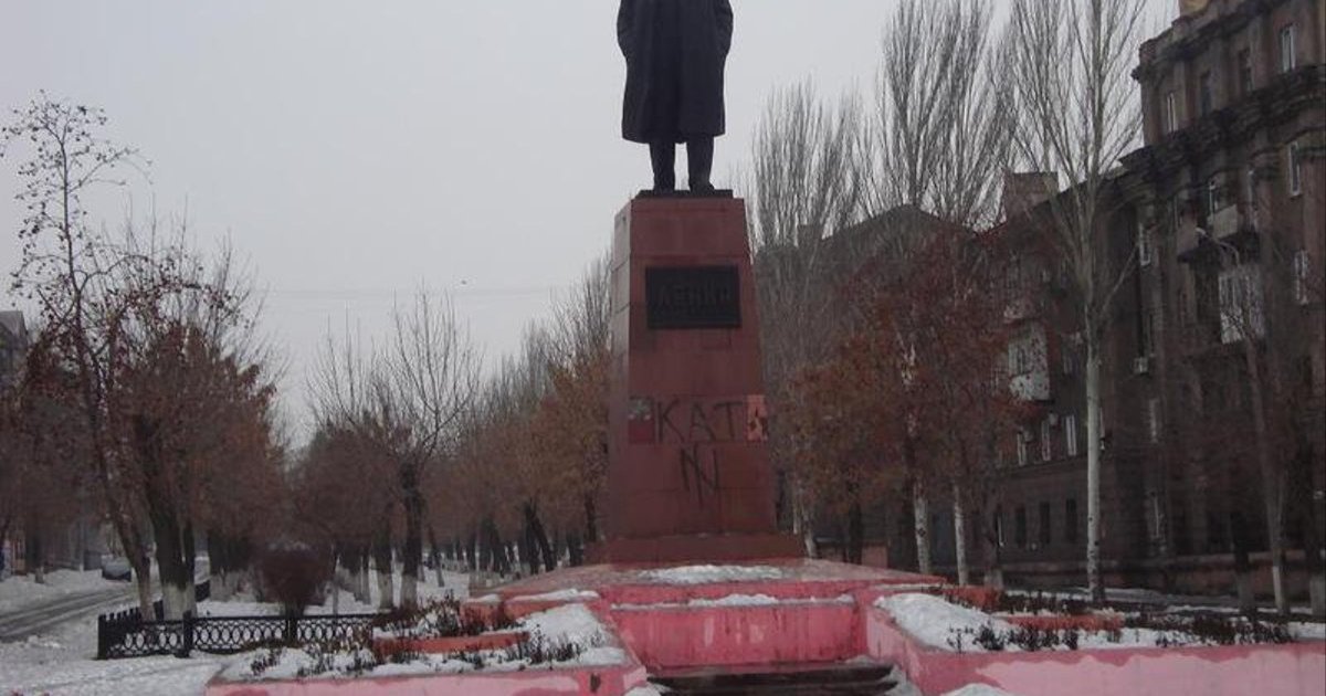 Неизвестные вандалы осквернили памятник Ленину в Алчевске.