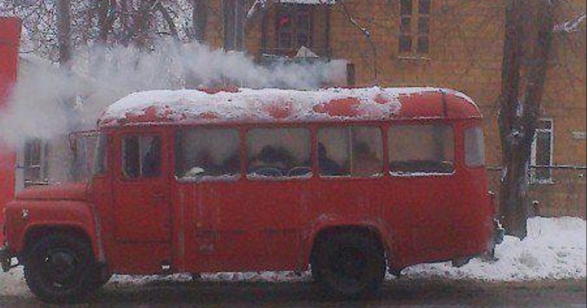 "Новый" транспорт в Донецке - автобусы с печкой-буржуйкой. ФОТО