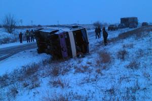 На Николаевщине перевернулся автобус с пассажирами. ФОТО
