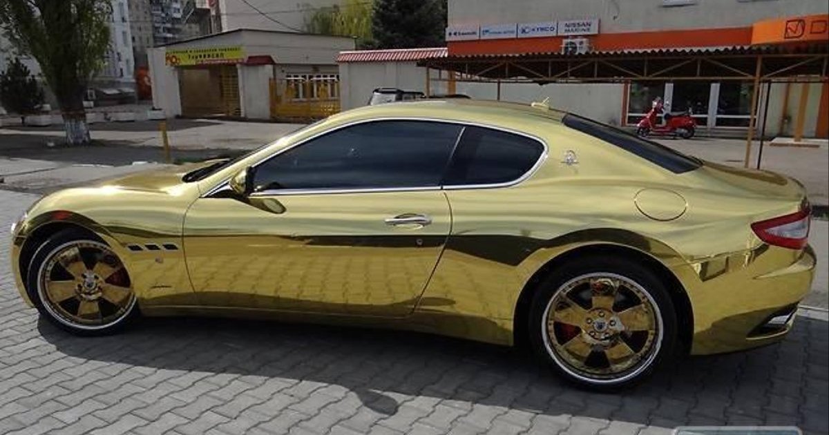 Машина 2008 года выпуска не покрыта слоем настоящей золотой краски, передает Цензор.НЕТ со ссылкой на trassae95.com. На автомобиль наклеена специальная пленка, однако внешний вид у машины, все равно «очень богатый».