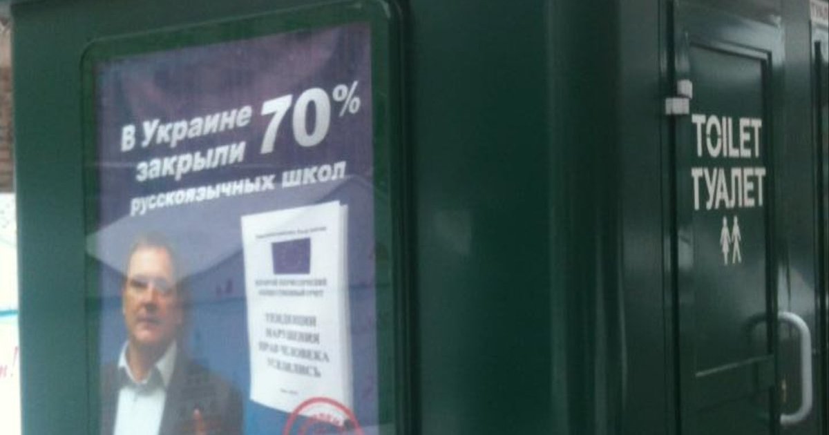 С рекламных щитов нардеп сообщает о том, что «в Украине закрыли 70% русскоязычных школ» и рекламирует общественный отчет под названием «Тенденции нарушения прав человека усилились», передает Цензор.НЕТ.