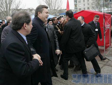 Охрана лидера ПР быстро оттерла назойливого фанат, а Янукович в свою очередь даже глазом не моргнул - на его губах играла безмятежная, приветливая улыбка...