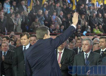 Виктор Янукович ощутил пристальное внимание к своей персоне и чуть не пострадал от проявления "всенародной любви". Предводитель "регионалов" по прибытии на съезд сказал напутственное слово почти двум тысячам учасников митинга, собравшимся под стенами Ледового дворца.