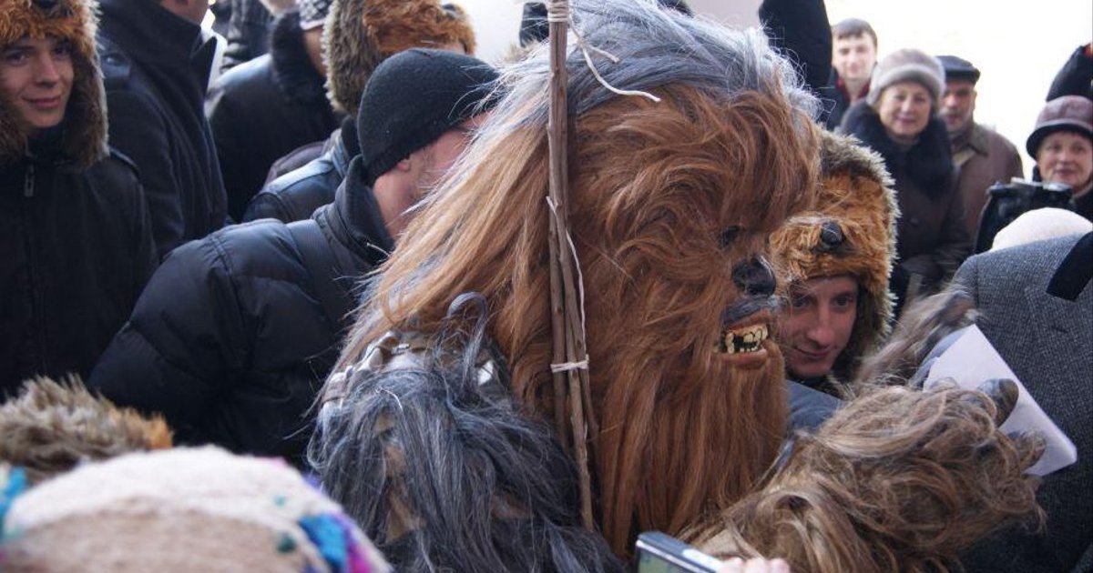 В это время на Думской площади появилось странное животное, которое организаторы митинга назвали Чубаккой (один из героев в "Звездных войнах"). Чубакка ничего не говорил, а только рычал, и, показывая на листовку, дал понять, что ему нужен хозяин города.