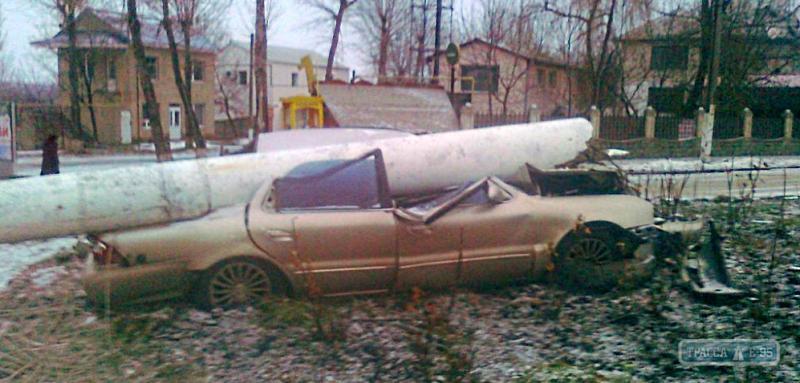 На Одесчине электроопора упала и раздавила машину. ФОТО