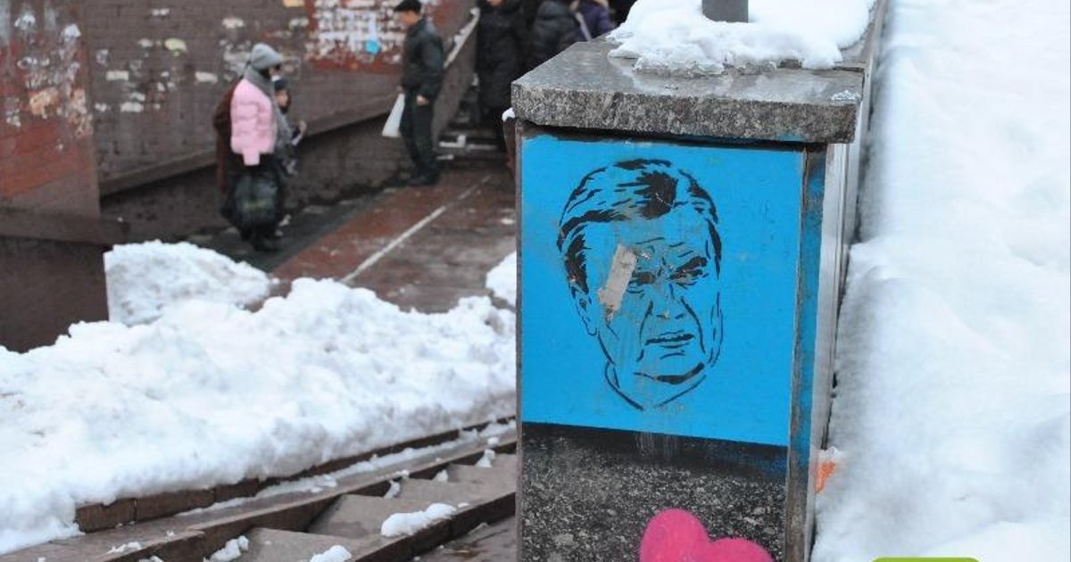 Неизвестные изобразили Януковича на голубом фоне, а Азарова - на розовом, - отмечает Цензор.НЕТ со ссылкой на 0564.ua.
