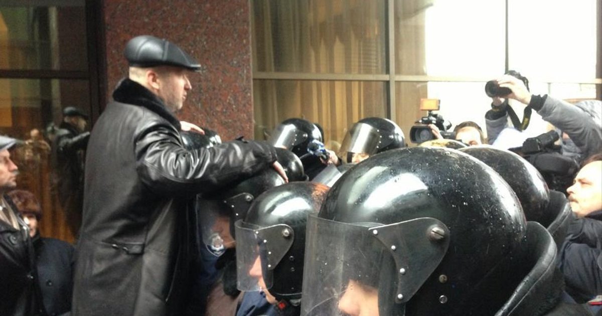 Александр Турчинов выступил перед прессой около Апелляционного суда через кордон "Беркута".