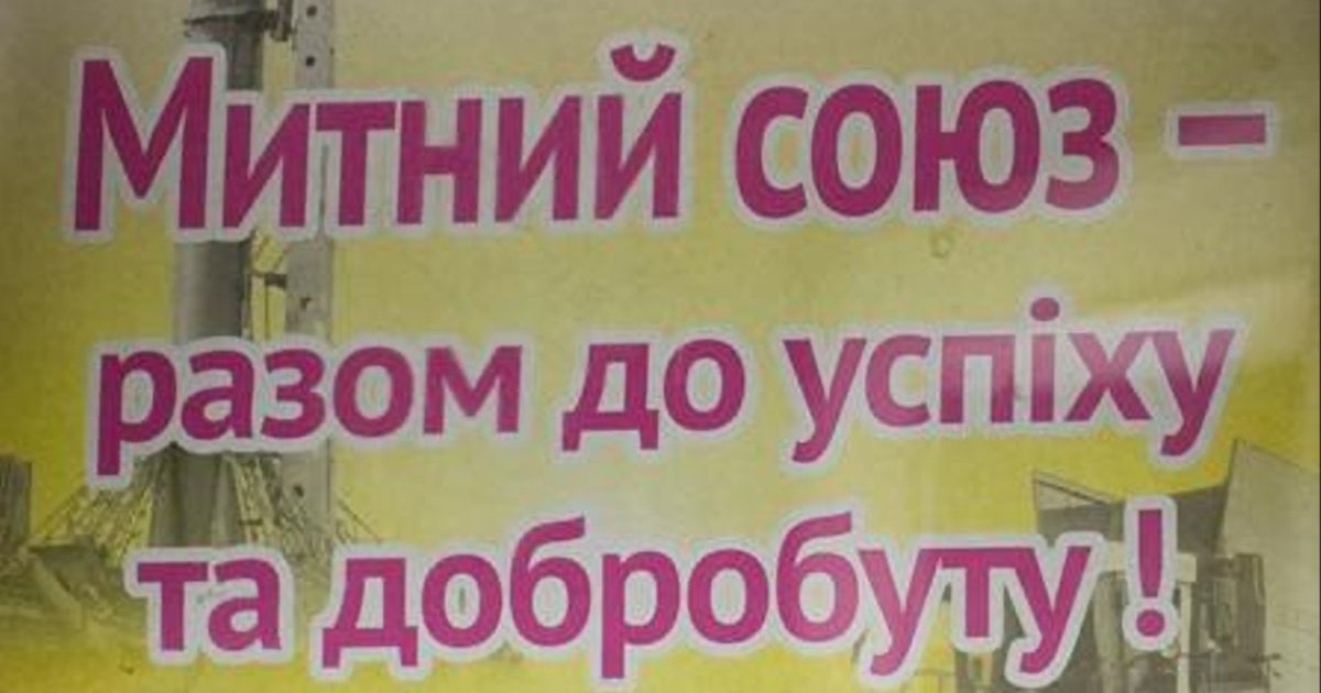 Об этом сообщает Цензор.НЕТ. В частности, на сити-лайтах содержится следующий текст: "Митний союз - разом до успіху та добробуту! Майбутнє обираєш ТИ!".