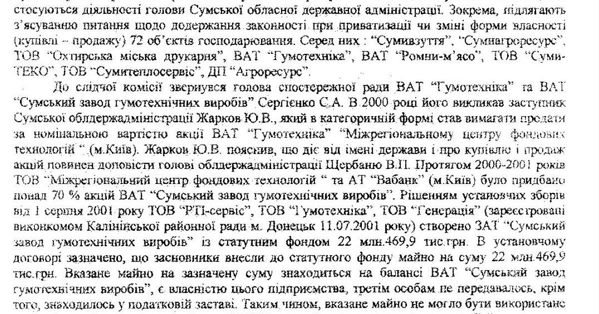 Вот что писала в начале 2002г. о Щербане Временная следственная комиссия Верховной Рады Украины, которая расследовала деятельность председателя Сумской ОГА - "Председатель Сумской ОГА Владимир Щербань и его заместители нарушают Конституцию Украины, Законы Украины, чем компрометируют органы исполнительной власти".