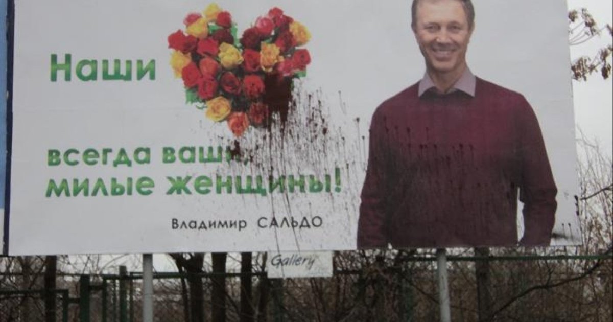 В центре Херсона неизвестные облили черной краской баннеры – поздравления с 8 Марта от нардепа-«регионала», экс-мэра Херсона Владимира Сальдо.