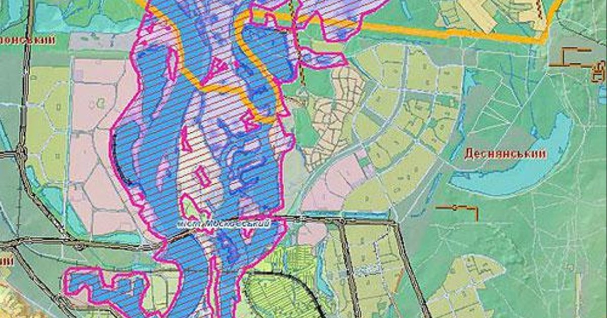 Как видно из карты, в зоне риска оказались Оболонь, Петровка, Голосеевский район ниже Южного моста, садово-дачная застройка вдоль Корчеватого, Осокорков, села Бортничи, Вышеньки и т.д..