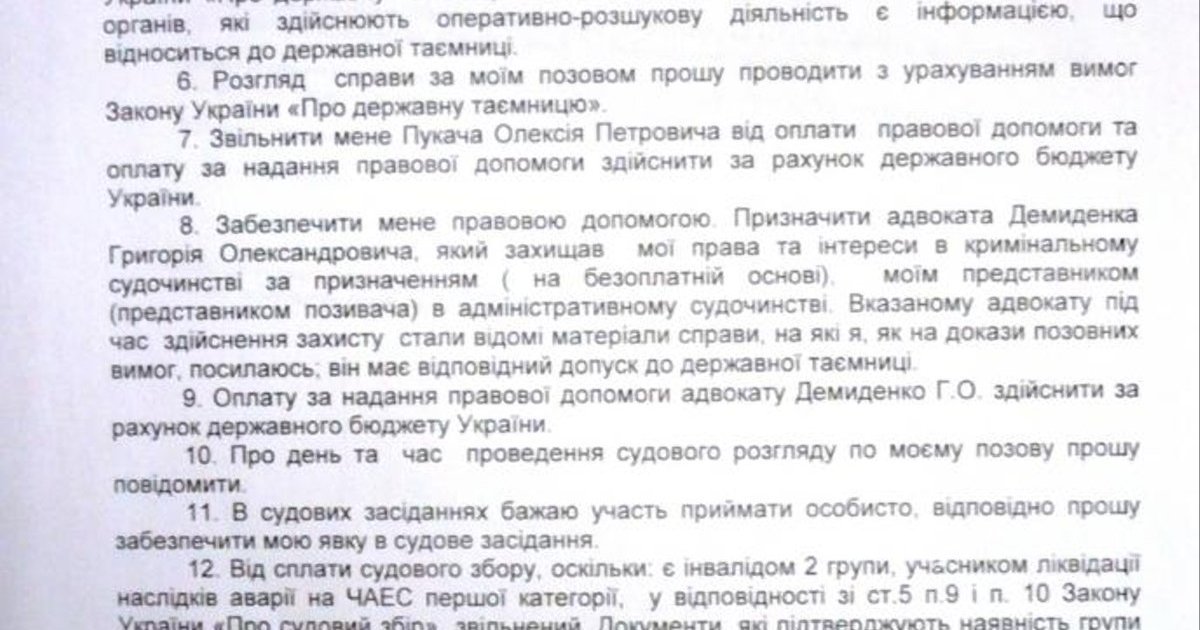 В начале апреля осужденный пожизненно за убийство журналиста Георгия Гонгадзе Алексей Пукач обратился с иском в Высший административный суд Украины и Окружной административный суд Киева.