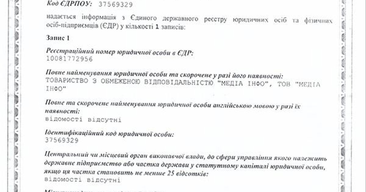 Некоторые СМИ, в том числе "Украинская правда", распространяют неправдивую информацию о якобы структуре собственности ТВi. Эта информация не соответствует действительности. Каждый может получить выписку из государственного реестра, где указаны учредители ООО "Медиаинфо".