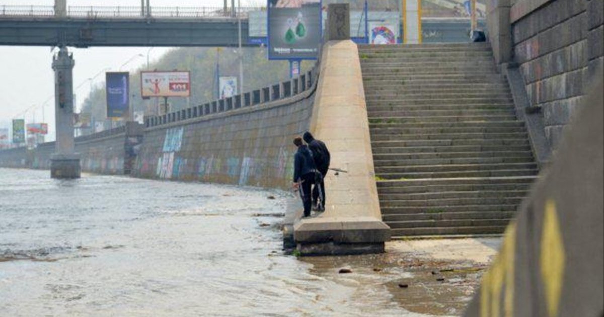 Набережную Днепра заливает водой - паводок уже практически поглотил участок от Моста метро до Речного вокзала - как раз то место, где гуляют киевляне.